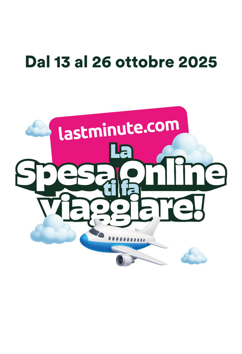 Dal 13 al 26 ottobre 2025, fai la spesa online sul sito o con l’APP Unes e ottieni subito una Gift Card da 50€ per il tuo prossimo viaggio su lastminute.com.