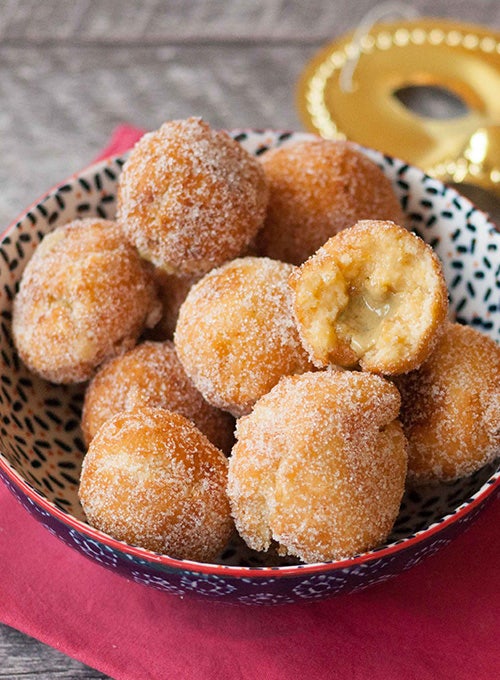 - Friggere le frittelle in abbondante olio caldo e poi passarle nello zucchero.