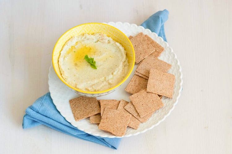 - Frullate gli ingredienti con un frullatore a immersione aggiungendo gradualmente olio EVO fino a ottenere una consistenza cremosa. Dividete la crema ottenuta in una o due ciotoline e servitela con i quadretti integrali Bio al centro del tavolo.