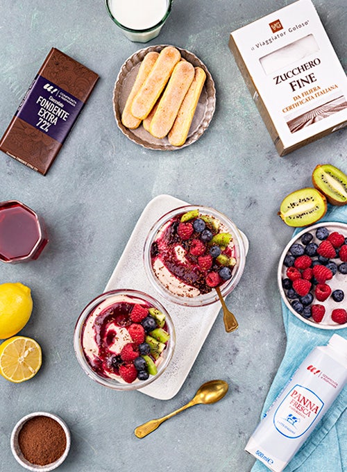 - Immergi i savoiardi nel succo di frutti di bosco e aggiungi mousse al cioccolato e marmellata. Completa con frutta fresca e una spolverata di cioccolato fondente per un dessert ai frutti di bosco con savoiardi.