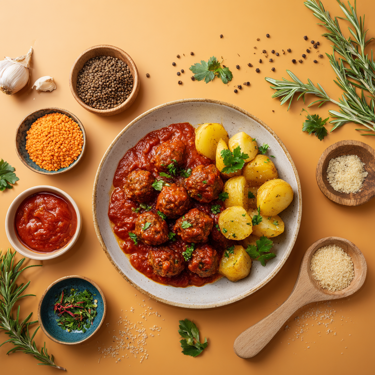 Polpette di Lenticchie al Sugo con Patate Arrosto