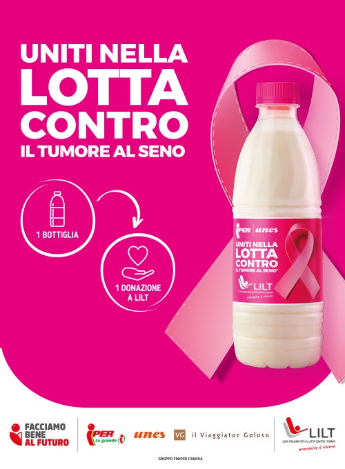 Durante il periodo dal 23 settembre 2024 alla fine dell'anno, parte del ricavato delle vendite di latte Iper Unes presso i punti vendita Unes, il Viaggiator Goloso e Iper La grande i, sarà devoluto a LILT per sostenere la ricerca e la prevenzione dei tumori. LILT è un'associazione senza scopo di lucro che promuove la prevenzione e sostiene la ricerca oncologica. Ogni anno a ottobre, noto come "mese rosa", LILT intensifica la sensibilizzazione sulla prevenzione del tumore al seno, una malattia che colpisce ancora molte persone. Con 400 ambulatori e 106 Associazioni Provinciali, LILT offre servizi di prevenzione in tutto il territorio italiano. Partecipa anche tu: cerca e acquista il latte con il fiocco rosa nei supermercati Unes, il Viaggiator Goloso e Iper La grande i aderenti all'iniziativa per sostenere la lotta contro il tumore al seno. Scopri qui i supermercati Unes che partecipano all'iniziativa.